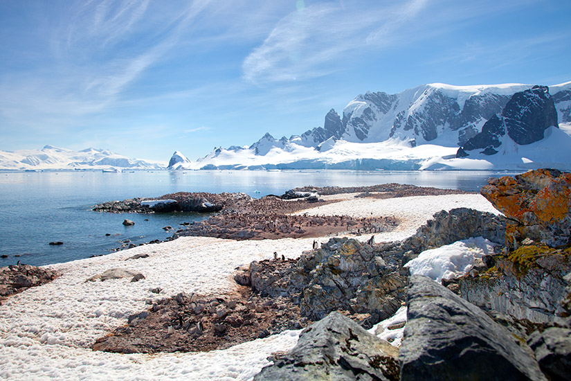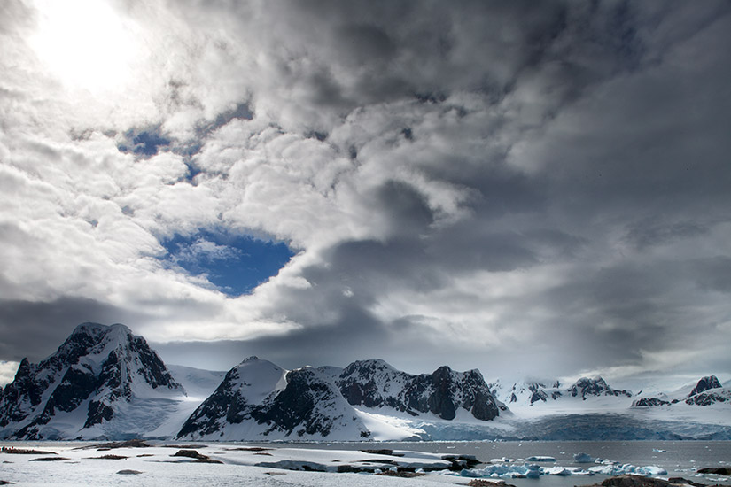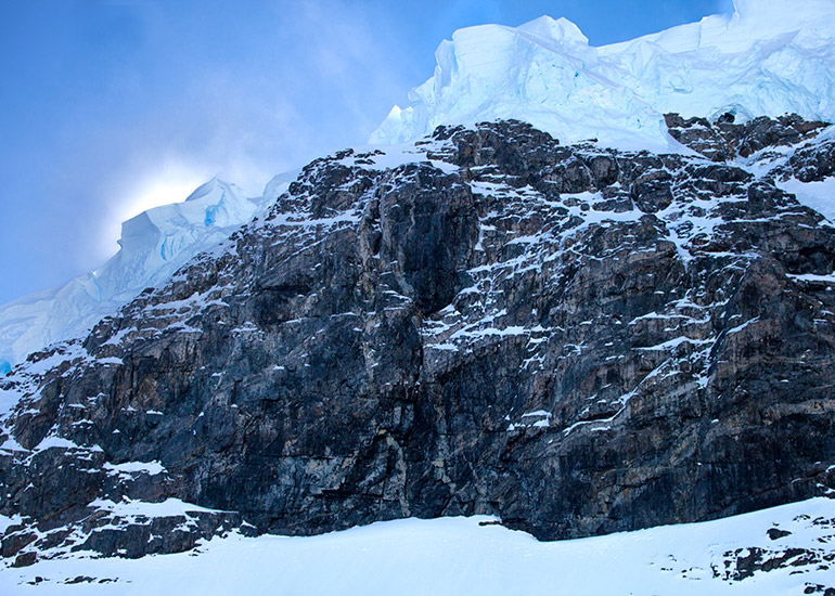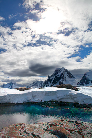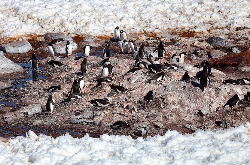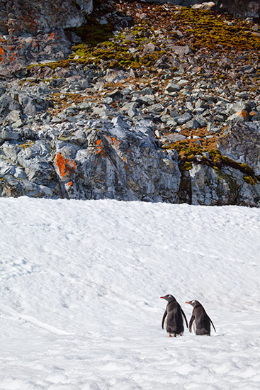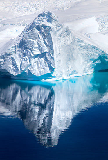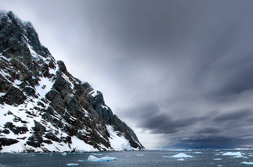 The Antarctic hosts the world’s largest protected environment, comprising 1.07 million km2. Most of the continent is permanently covered by ice and snow, with less than 1% of the land exposed. Human visitors have frequented the South Pole region – explorers, whalers, scientists and military at research centres – and recently it has been opened to tourists. The huge penguin colonies here were used by early whalers to locate their camps as their presence suggested both a warmer microclimate and locations where the snow and ice were likely to be thinnest. Experiencing the midnight light is surreal: monochromatic but with a full dynamic range, it is like being inside the perfect black and white negative.
