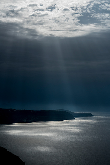 As the light changes over the calderas along the South Aegean volcanic arc the rock formations contrast and shift from hard to soft. Calderas exist throughout the solar system, their shifting movement, the observed hues and texture of the dark rock. Swimming in the warm water of the vents envelope us in the unfathomable timespans of geology.