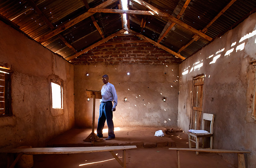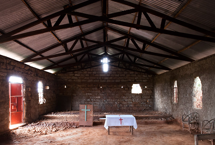 The varied architecture of the religious buildings in Machakos Diocese are the centre of many communities in a drought-prone area of Kenya. Simply constructed from local materials with essential ‘props’ to facilitate the function of the spaces – singing, preaching, communion and communal gatherings – these spaces lucidly define an architecture of orientation, light and material. Despite their simplicity and relatively poor construction, the buildings allow for naturalness, ambiguity and looseness. The harsh African sun is diffused, directed and controlled to allow for activity, and render emotion in the most primitive of buildings, expressing the importance of shelter and light for personal and community use.