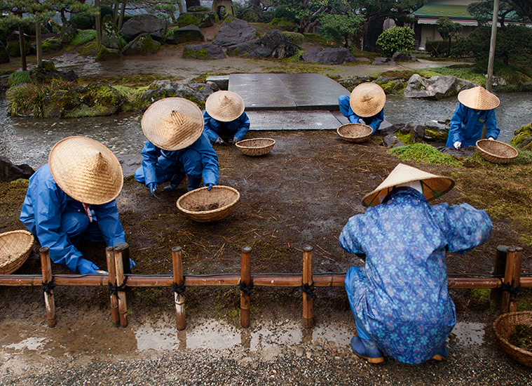 Kyoto comes alive in Spring, when the ephemeral cherry tree blossom is cherished by locals and visitors alike. Public and private spaces are animated by the translucent pink blossom, festivals abound, and geishas and residents alike wear flowers, creating a sublime link between humanity and the passing of time. Ryoan-ji is the world’s most famous Zen garden. Set in a field of gravel and surrounded by delicate moss, its rocks are transformed into scale-less islands in the sea. The moss creates a feeling of mellow tranquillity but is in rapid decline due to changes in the environment – a particularly poignant irony as it was here, of course, that the United Nations’ Kyoto treaty was signed in 1997, calling on industrial nations to reduce polluting carbon dioxide emissions that fuel global warming.