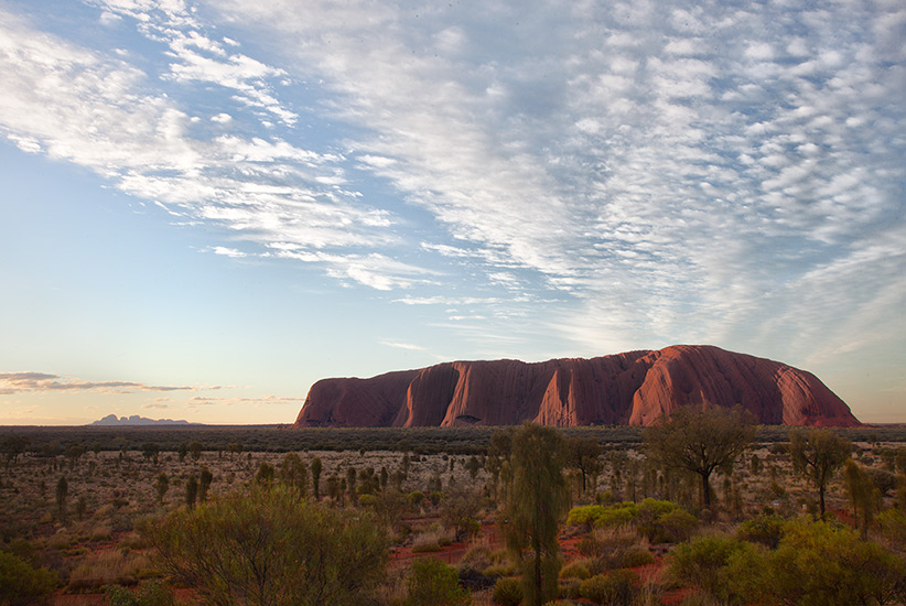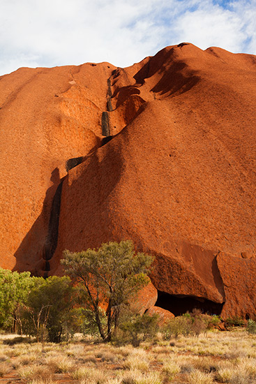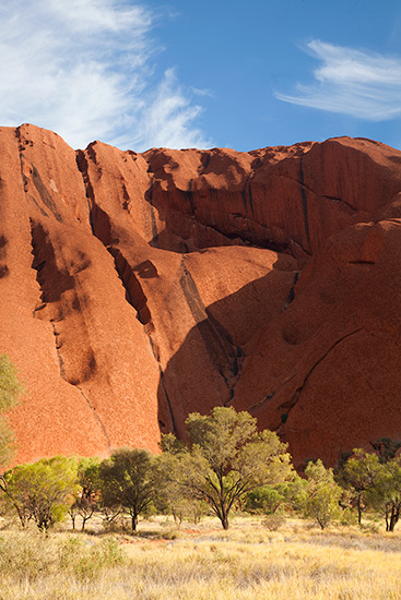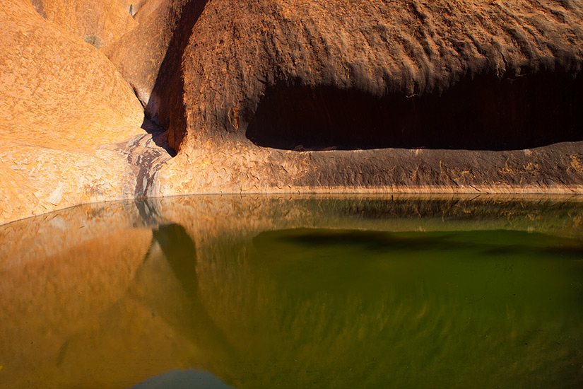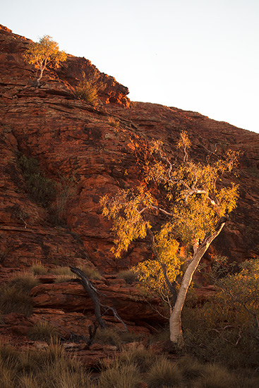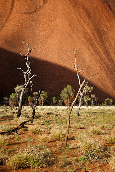 Uluru and Kata Tjuta are sacred places to the aboriginal people. Visitors are dissuaded by locals from climbing Uluru although many millions have and continue to do so. This place has many associated stories about how it was created and amended over time and in many areas photography is prohibited to protect its spiritual wholeness (respectfully followed in these images). The homogeneity of the rock is unusual at this scale, rendering changes of colour, shadow and texture across its surface all the more satisfying to the eye throughout the day and at sunset. Sitting proud in the vast horizons of the red centre, the sparse fauna and flora are enjoyably thin and delicate against the solidity and strength of the rock.