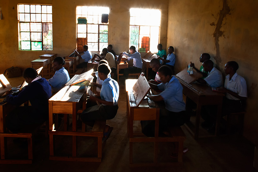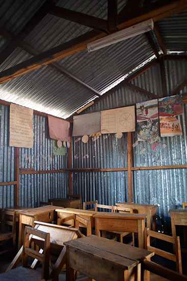The catholic schools of Machakos often start as small enclosures in wide open landscapes, the church locating in such areas to allow for future expansion. These start-up school buildings are cheaply made from local brick and tin roofs with robust timber furniture and toys inside. To prevent overheating the classrooms are generally fitted with very few windows: bricks are left out and light leaks in between roof and walls and to allow background light for teaching.
