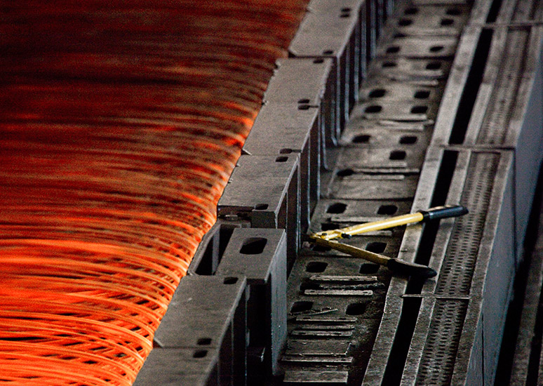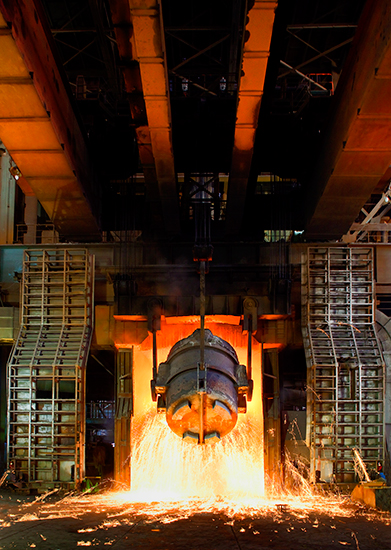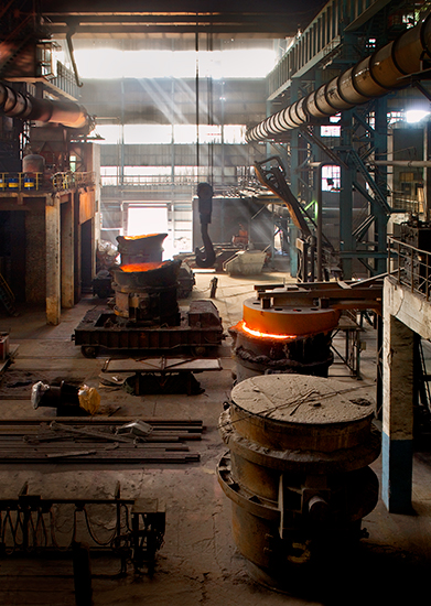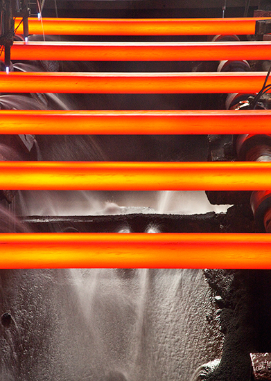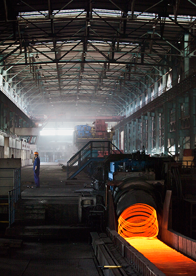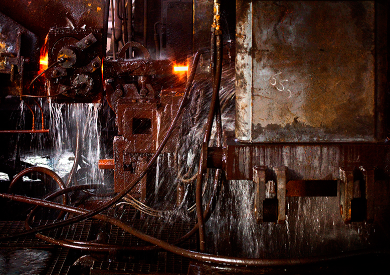 The steel industry in China has developed over the last seventy years to become the world’s largest, now accounting for the 50% of the world’s production. The steel plant in Qingdao is housed in immense warehouses; white light pours in from clerestory windows onto the luminescent red hot steel as it is moved through several processes to create rods, bars, tubes and other products. The steel plants of China rely directly on energy inputs from coal-fired power stations; the burning of coal has led to extreme levels of air pollution and recently it has been announced that Beijing will close all its coal plants. The closures are part of a broader trend in China, which is the world’s biggest carbon emitter. Facing pressure at home and abroad, policy-makers are racing to address the environmental damage seen as a by-product of breakneck economic growth.