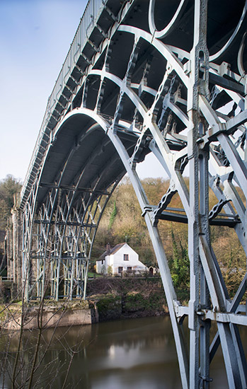 Ironbridge is a village on the River Severn, at the heart of the Ironbridge Gorge, in Shropshire, England. The area around Ironbridge is described by those promoting it as a tourist destination as the “Birthplace of the Industrial Revolution”. This description is based on the idea that Abraham Darby perfected the technique of smelting iron with coke, in Coalbrookdale, allowing much cheaper production of iron. The Iron Bridge that crosses the river opened in 1781, it was the first arch bridge in the world to be made of cast iron, and was greatly celebrated after construction owing to its use of the new material.