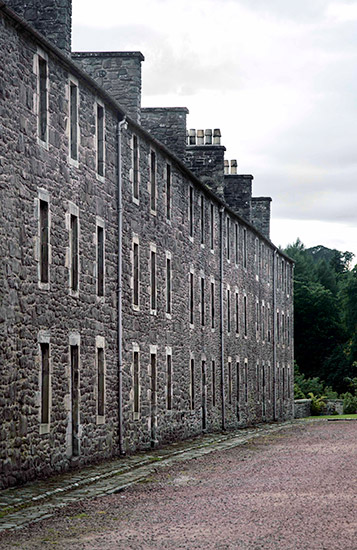 The New Lanark cotton mills were founded in 1786 by David Dale in a brief partnership with Richard Arkwright. The New Lanark mills depended upon water power. A dam was constructed on the Clyde above New Lanark and water was drawn off the river to power the mill machinery. New Lanark became celebrated throughout Europe, with many leading royals, statesmen and reformers visiting the mills. Owen was able to show visitors the village’s excellent housing and amenities, and the accounts showing the profitability of the mills.